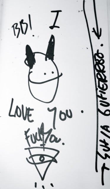 Merci à Seb de m'avoir récupéré le carnet car la demoiselle semblait apaisée et souriante après sa session FD, juste le temps de lui demander un petit croquis de sa musique et là je suis pas sur qu'elle est vraiment compris le concept ou mon anglais ou celui de mon traducteur.
